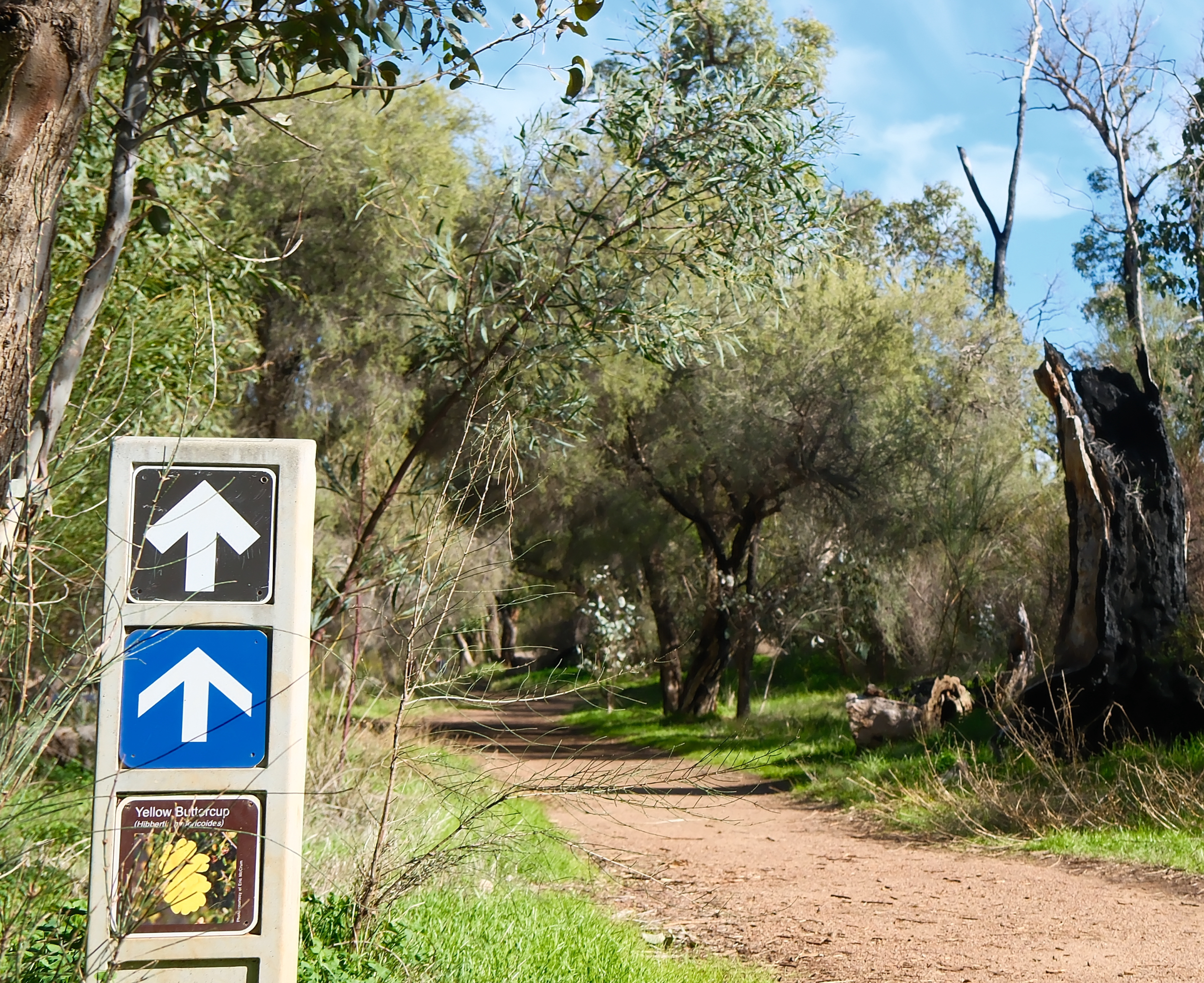 Anyway, the 1-hour hike is really comfortable and direction signs are special. There are pictures showing the plants nearby. After a while, we are able to find the yellow Hibbertia hypericoides. The treasure hunt is interesting and hopefully we can find out more next time.